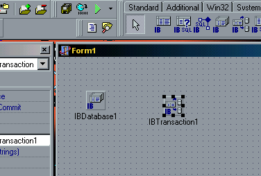 2: Colocamos un IBDatabase en la forma de nuestro proyecto, y también un IBTransaction, de esta forma: