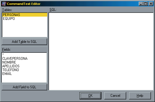 Aquí vemos cómo este editor nos facilita la creación de las instrucciones SELECT de SQL. Pero simplemente escribimos la instrucción y damos Ok.