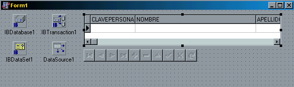 Una vez que hemos llenado estas propiedades, podemos cerrar y abrir el IBDataset1, y el dbNavigator1 debe verse así:
